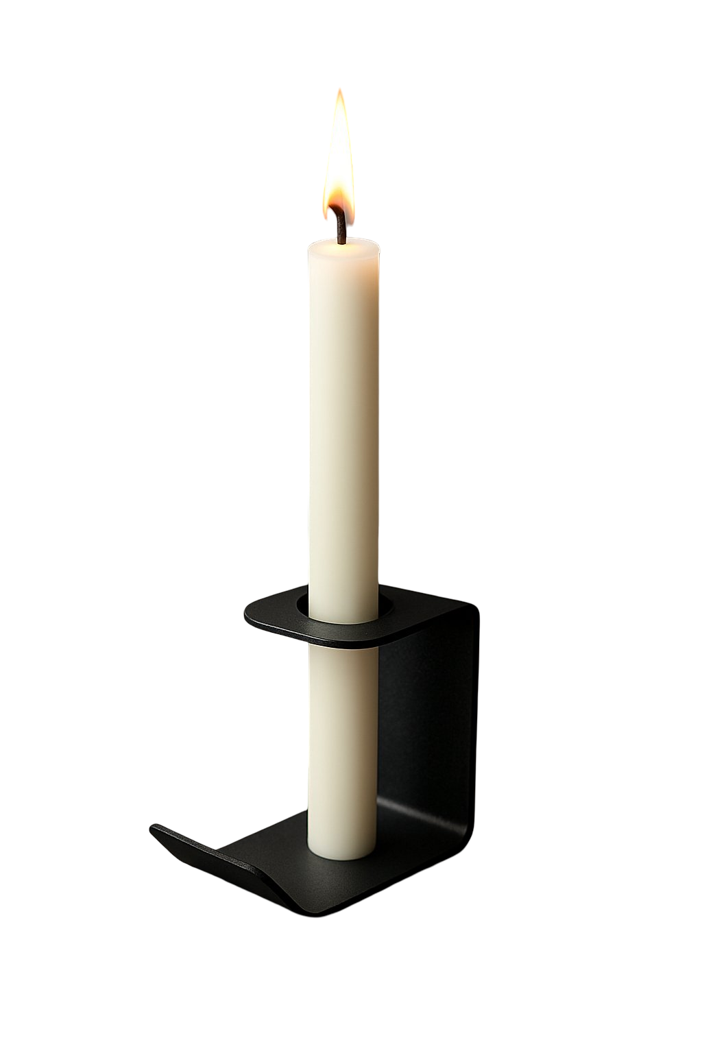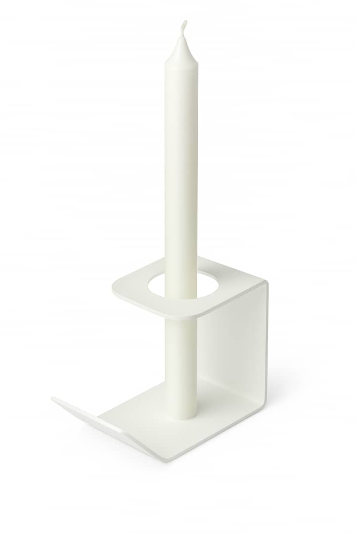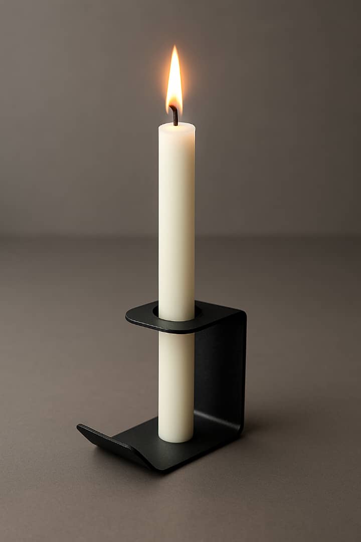 سوراخ تعبیهشده در قسمت بالایی، بهگونهای طراحی شده که شمعهای استوانهای (شمعهای بلند و باریک) بهطور کامل درون آن قرار میگیرند و ایستایی بالایی داشته باشند. پایهی خمکاریشده محصول، علاوه بر ایجاد زیبایی بصری، ثبات بیشتری روی سطح میز یا قفسه فراهم میکند.