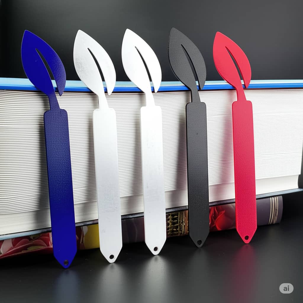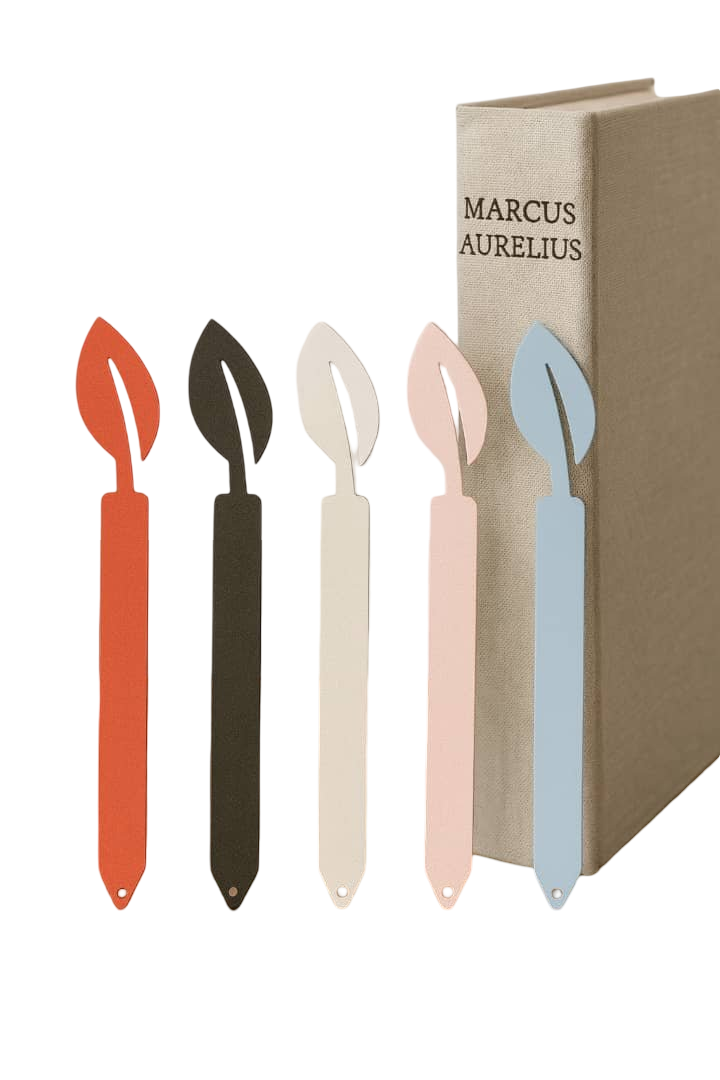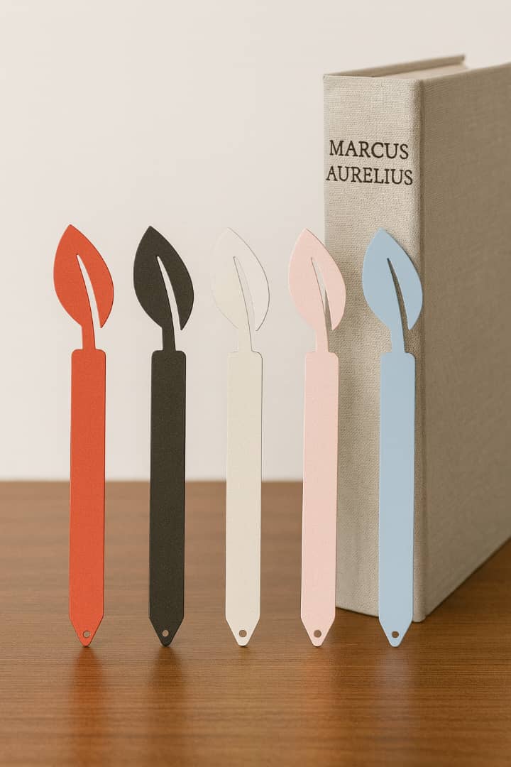 - نشانگر کتاب فلزی طرح برگ، یک انتخاب خاص و مینیمال برای عاشقان مطالعه است.