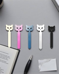 - نشانگر کتاب فلزی با طراحی خاص سر گربه، انتخابی جذاب و متفاوت برای علاقهمندان به کتاب و حیوانات است.